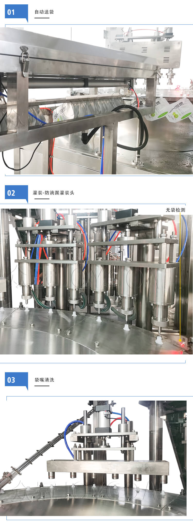 我們的自封袋灌裝旋蓋機(jī)采用食品級(jí)304#不銹鋼