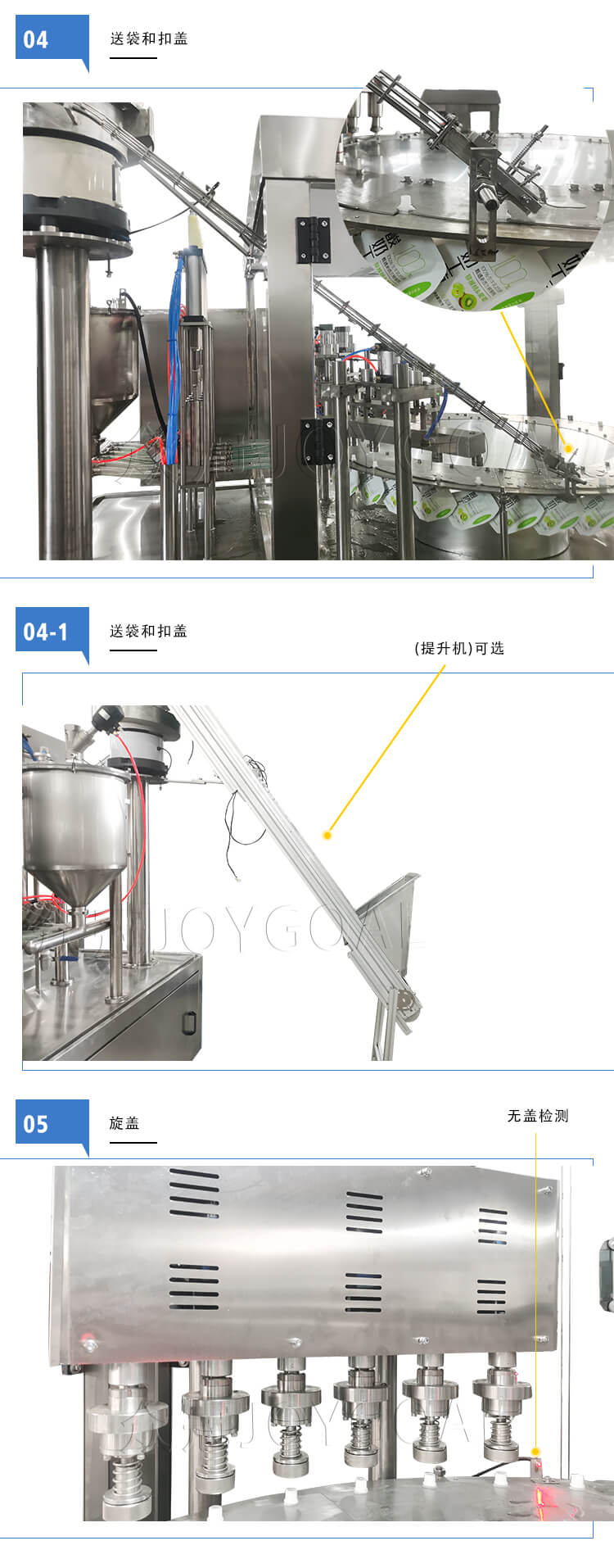詳細(xì)圖片顯示如何調(diào)整機(jī)器速度,如何調(diào)整灌裝量,如何調(diào)整振動(dòng)強(qiáng)度,如何調(diào)整旋蓋強(qiáng)度,如何維護(hù)