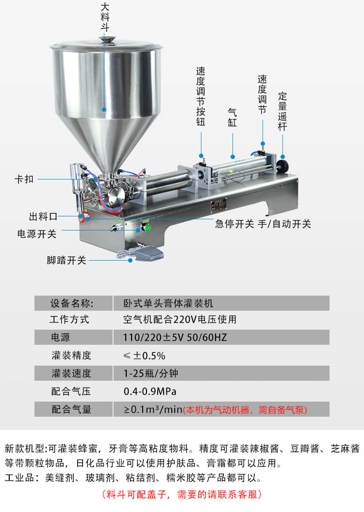 蜂蜜果醬辣椒醬洗發(fā)水洗衣液洗手液氣動(dòng)不銹鋼半自動(dòng)膏體灌裝機(jī)