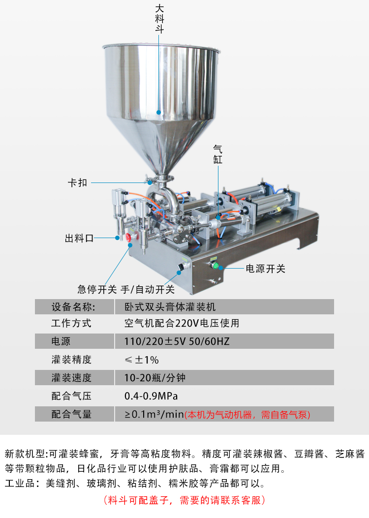 半自動(dòng)雙頭膏液體蜂蜜奶油果汁食用油定量灌裝機(jī)